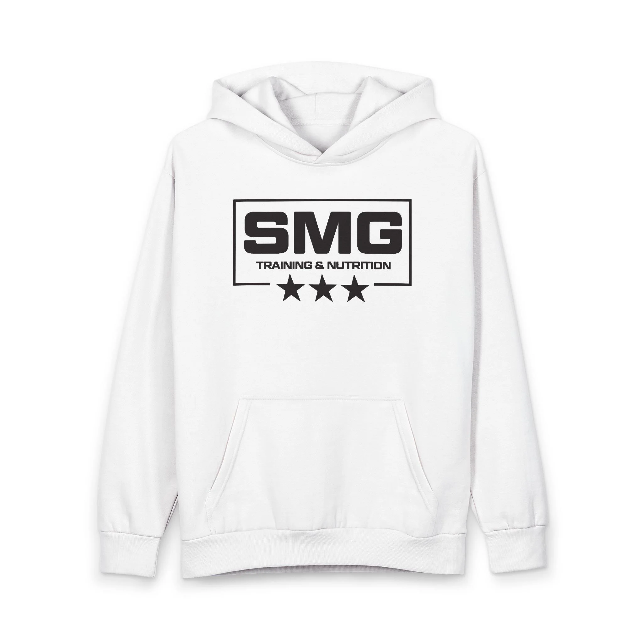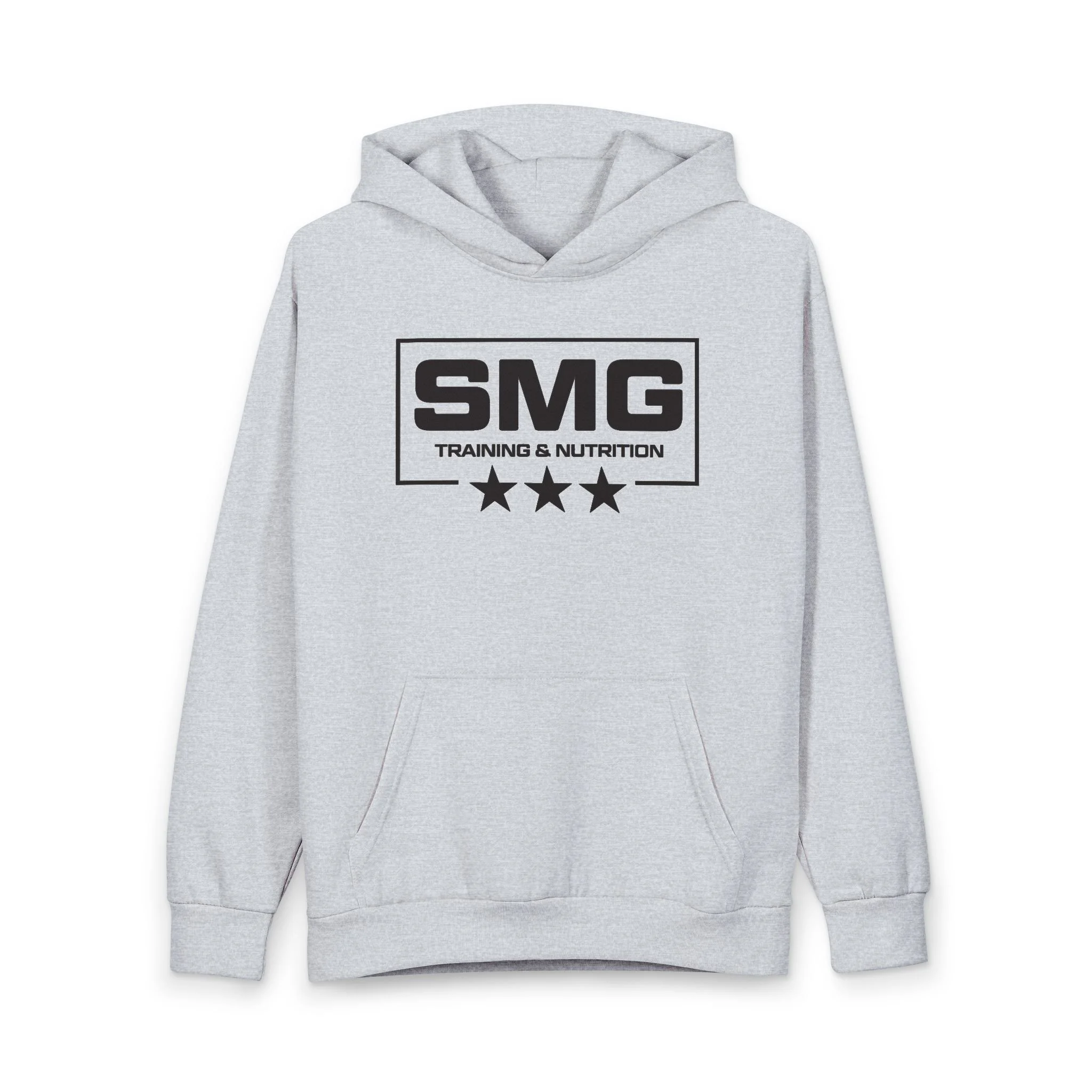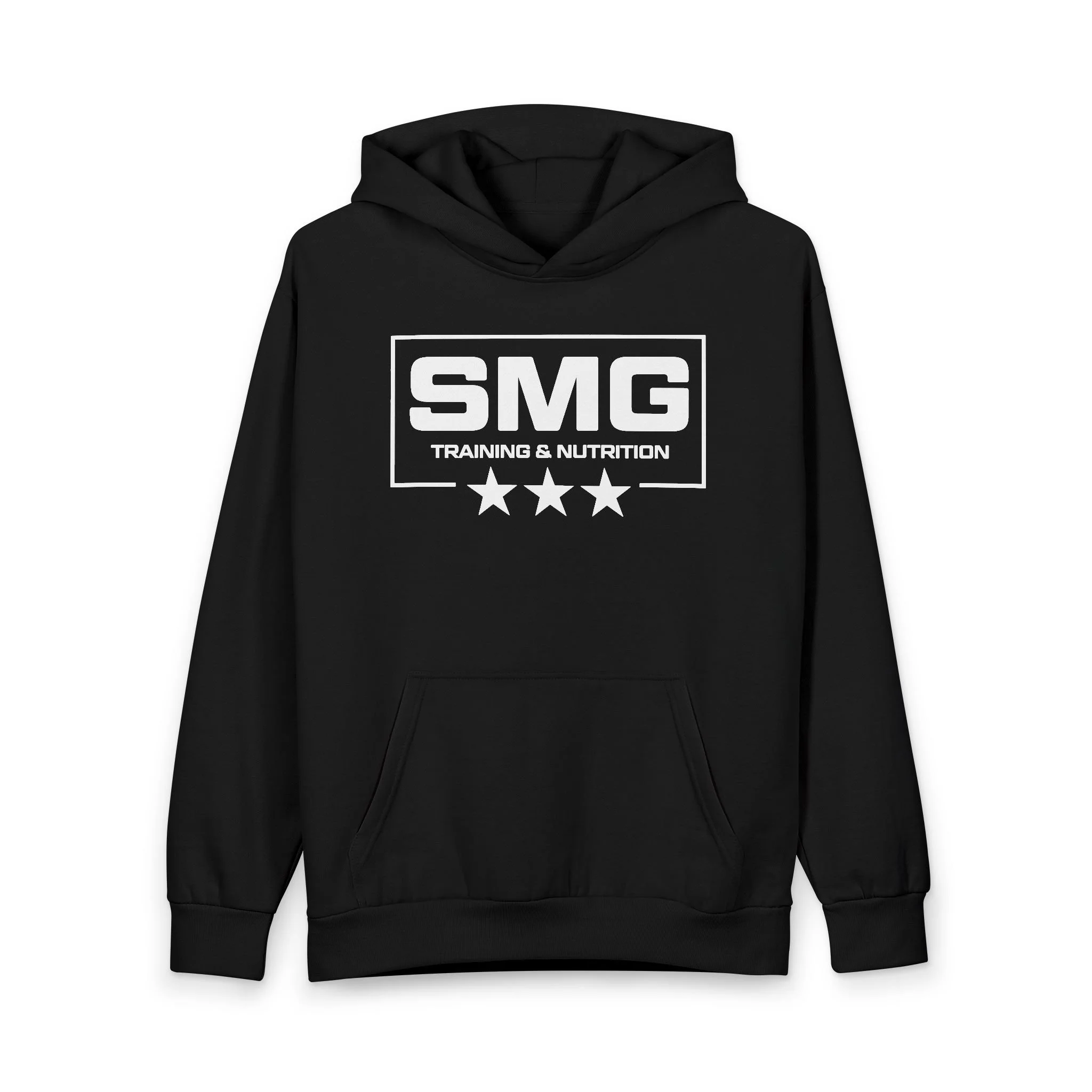 This oversized pullover hoodie brings a modern, gym-minded edge to everyday wear. Built from a heavy 80/20 cotton‑poly blend and reinforced with double needle stitching, it feels substantial and holds its shape through long weeks of training and travel. The double‑layer hood (no drawstring) and ribbed cuffs and waistband lock in warmth without fuss. Front kangaroo pocket and a clean back let the bold SMG logo and three-star graphic sit centerstage — a quiet badge of commitment for anyone focused on strength and progress. Wear it to warm up, to commute, or to unwind after a session; it moves with you and ages with character.